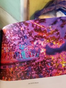 その写真集の数枚のページの色をもとに、ピンクと青のイメージを入れて描くことにしました。